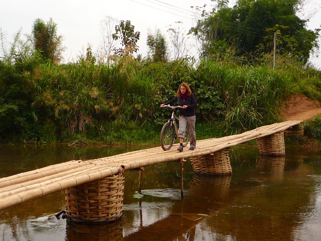 Luang Namtha: Eine kleine Mutprobe auf einer Radtour durchs Hinterland. Selbst die Einheimischen müssen ihre Mopeds schieben…und das soll schon was heißen!