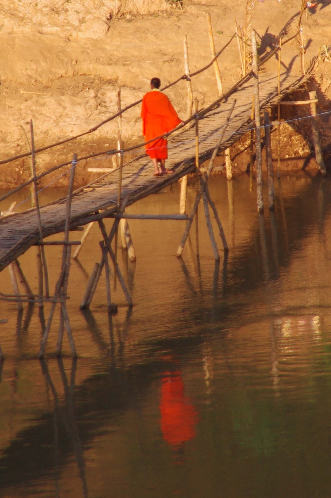 image Luang Prabang: Die Bambusbrücke wird hauptsächlich von den Mönchen benutzt, um zu dem gegenüberliegenden Wat (Kloster) zu gelangen.
