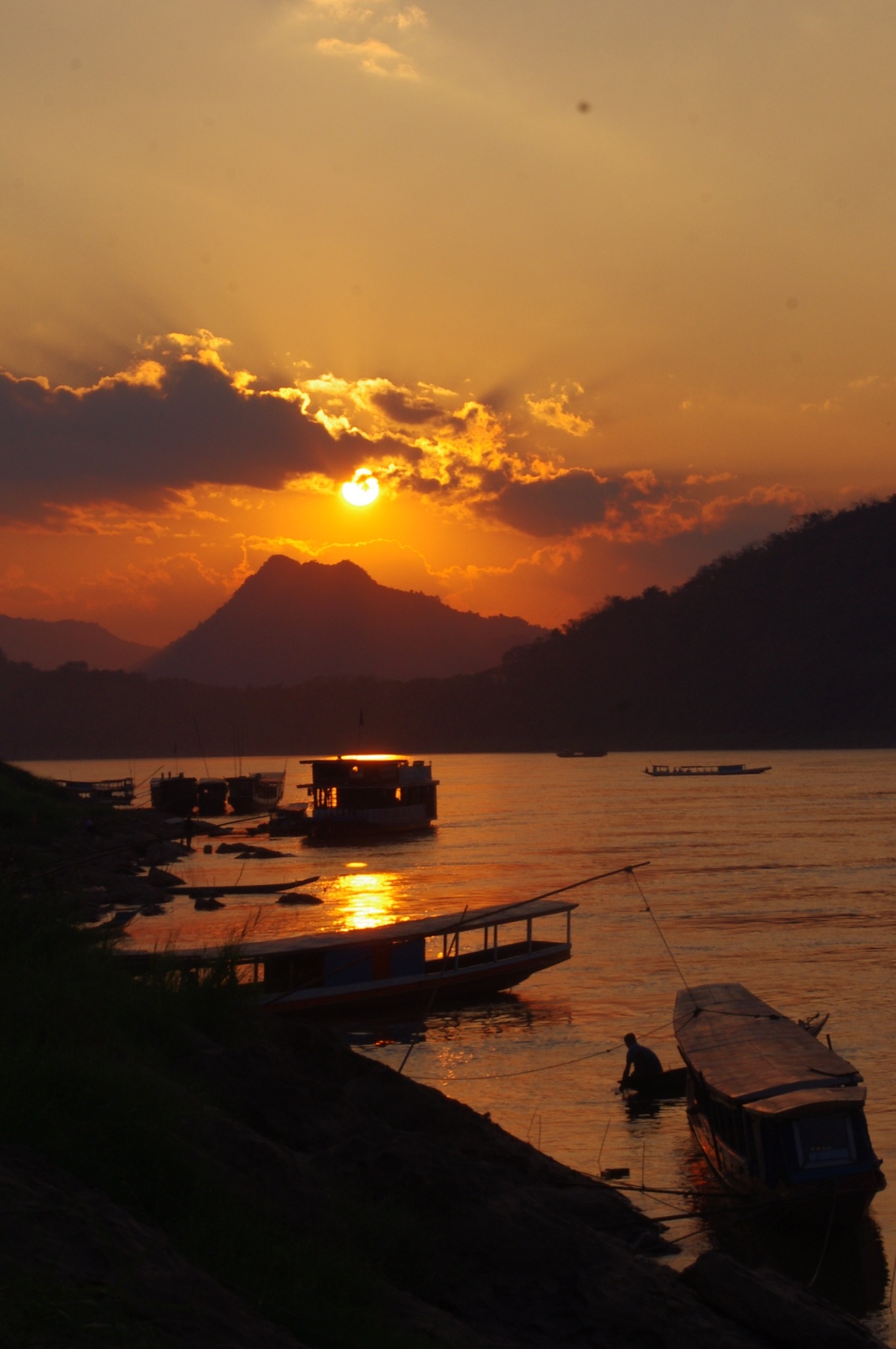 image Am Abend kommen wir mit malträtierten Sitzfleisch endlich in Luang Prabang an und werden von diesem Sonnenuntergang empfangen.