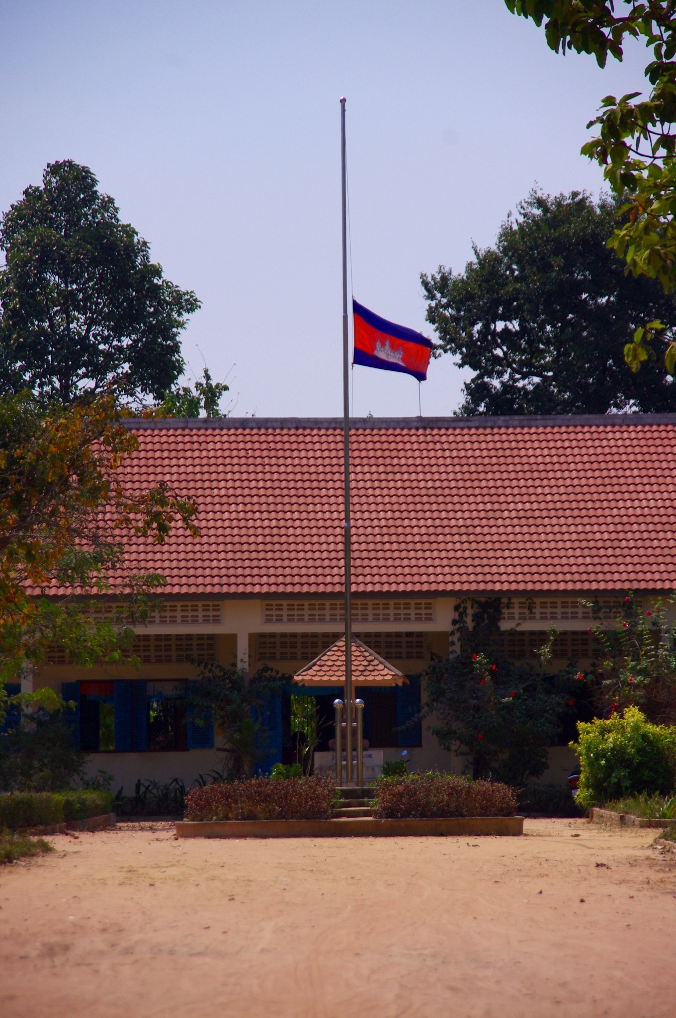 Die Schulflagge hängt zu Ehren der Kremierung des ehemaligen Königs auf Halbmast.