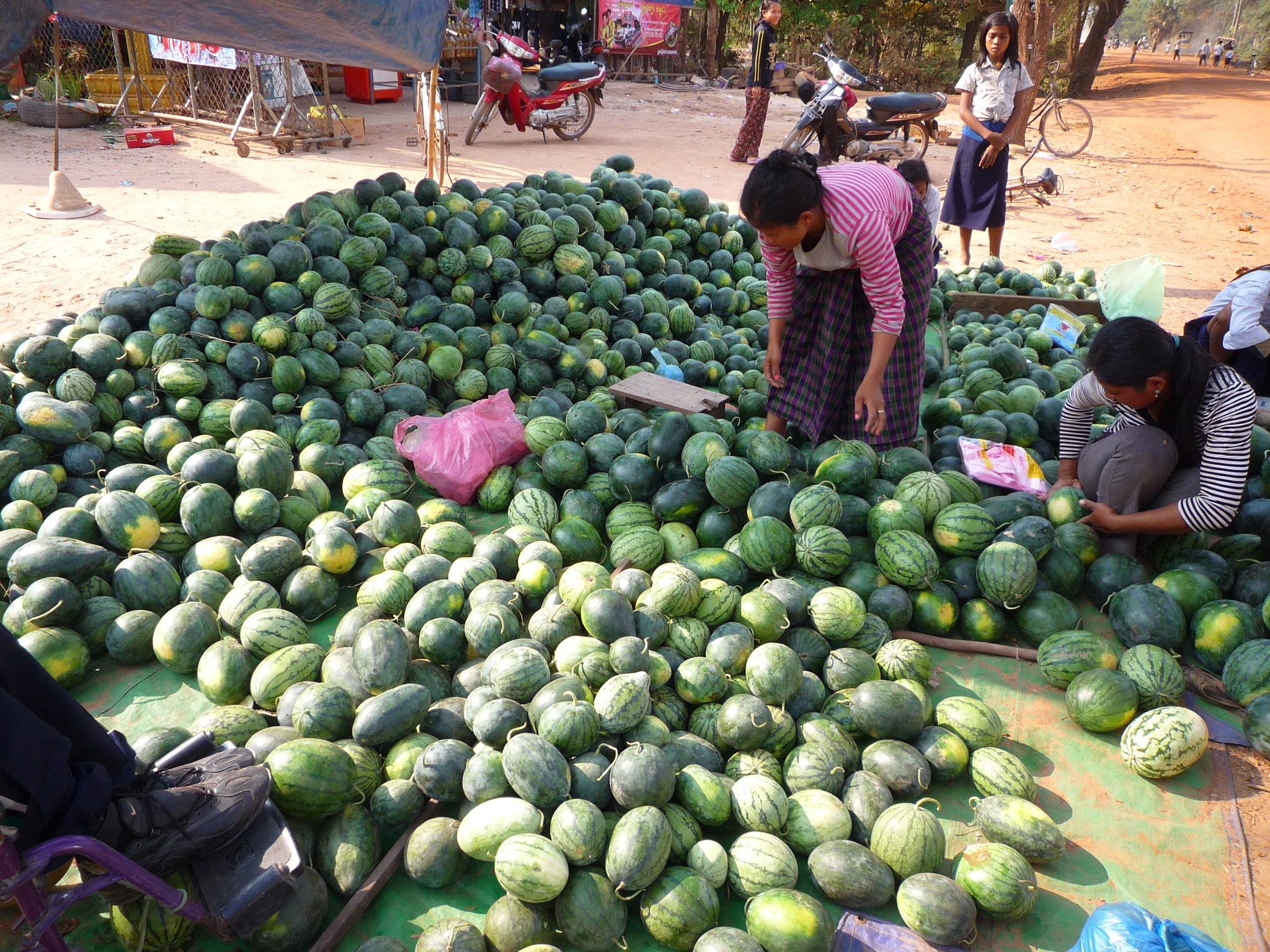 Auf dem Weg kann man sich ja noch eine Melone mitnehmen. Die sind, wie ja deutlich zu erkennen ist, nach Größen/Preisen sortiert. 30 mittelgroße Exemplare kosten ungefähr 8 US$.