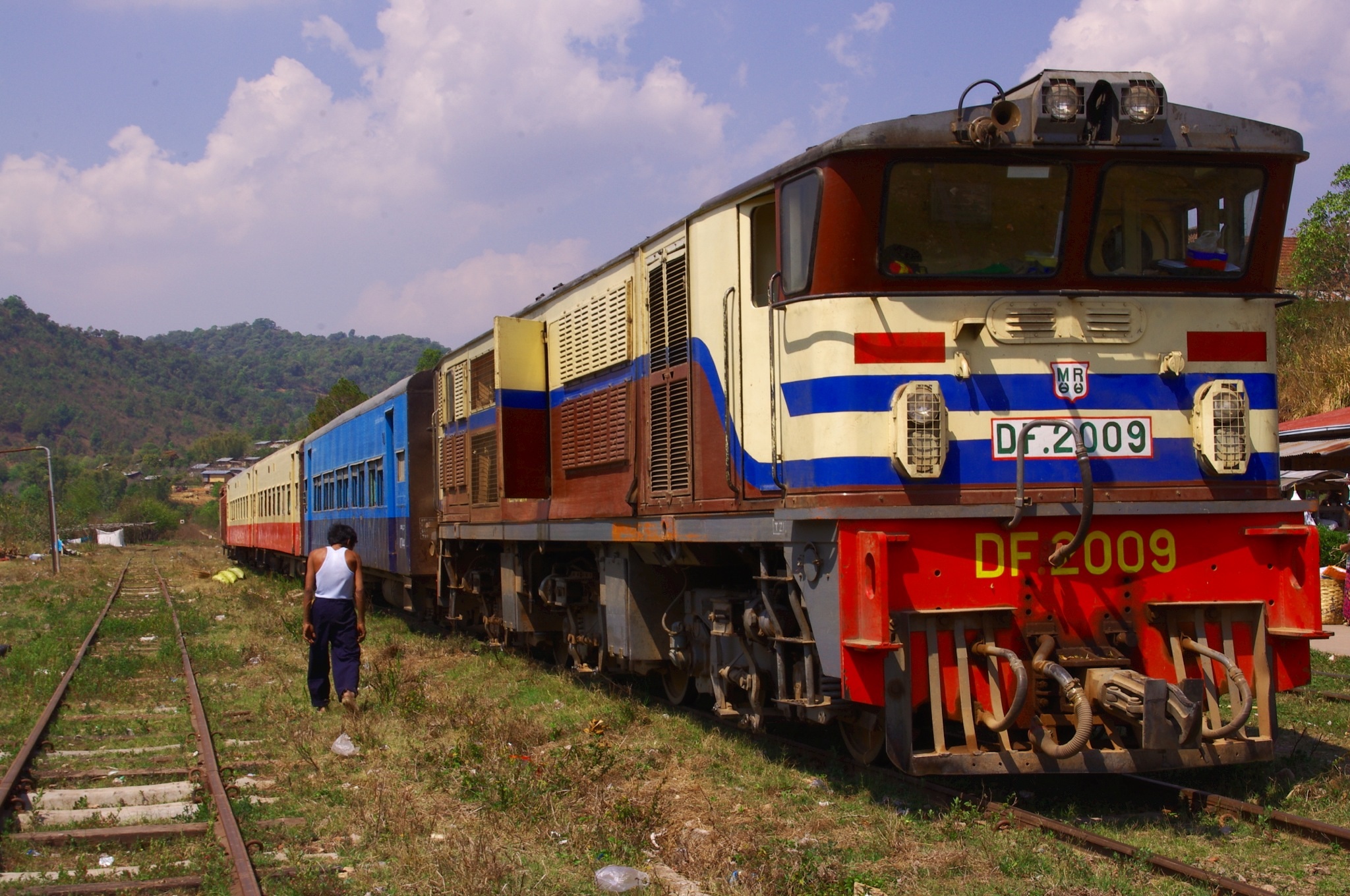image Eine ebenso leistungsstarke wie in die Jahre gekommene Diesellok zieht den Zug durch die Berge zwischen Thazi und Kalaw.