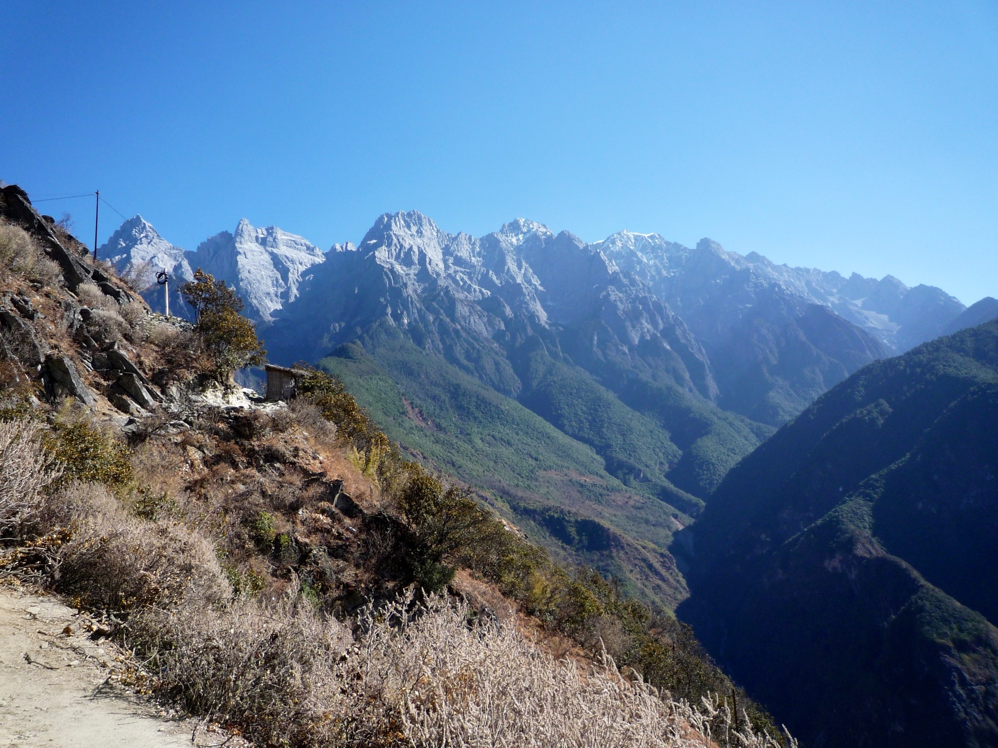 Die Tigersprungschlucht ist ein schönes Naturschauspiel, welches in ungewisser Zukunft durch einen Staudamm überflutet werden soll. Endlich kommen unsere Trekkingsachen wieder zum Einsatz.