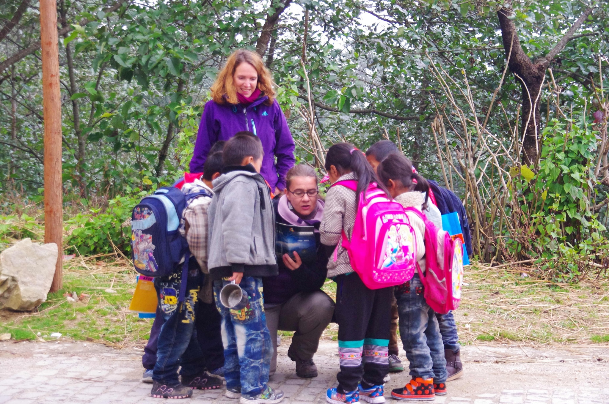 Yuanyang: Hallo ihr Knöpfe, könntet ihr uns bitte mal den Weg nach Hause auf der Karte zeigen? Kurz danach laufen sie schreiend und lachend davon…wir müssen unbedingt an unserem Chinesisch arbeiten.