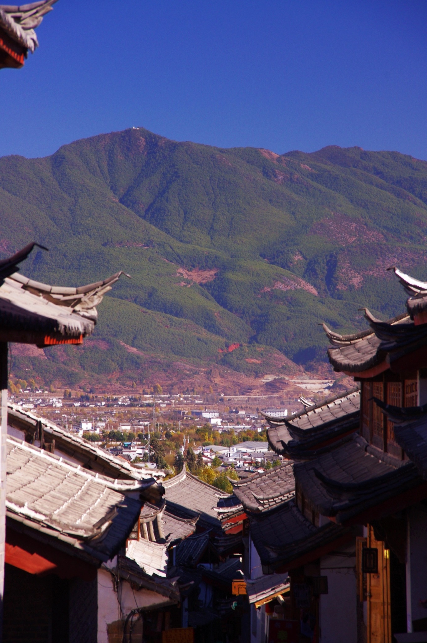 Lijiang: Ein Blick von der Altstadt auf die Neustadt.
